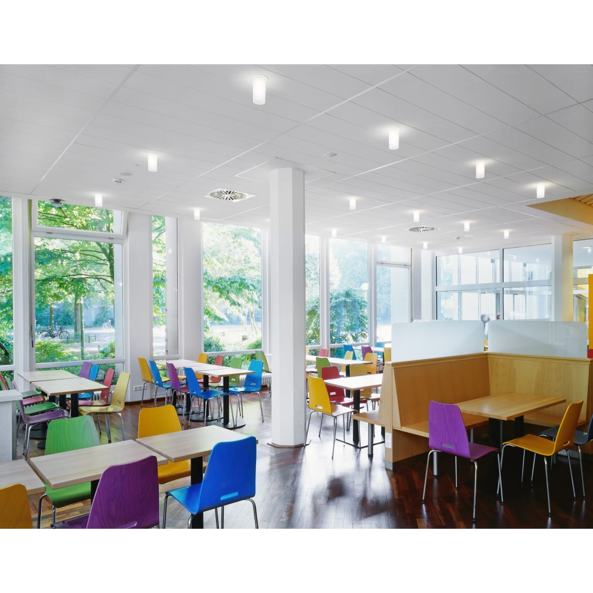 - Ideal for open spaces, vibrant open plan offices and cafeterias